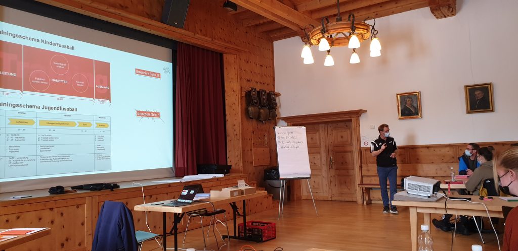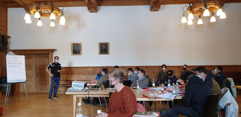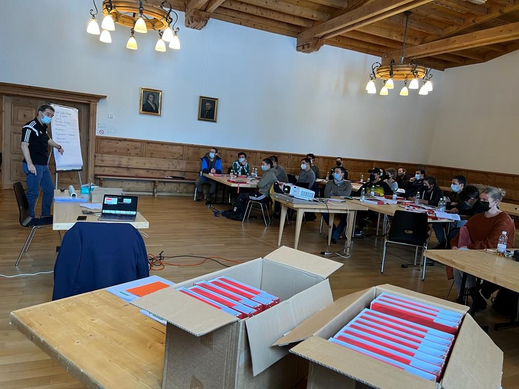 Während vier Stunden wurde referiert und auch in Gruppen gearbeitet. Die Inputs des Kursleiters sowie der Erfahrungsaustausch an den jeweiligen Arbeitstischen waren sehr fruchtbar. Für die Teilnehmer, die nur Italienisch konnten, wurde extra ein separater Tisch organisiert. Dort wurden die Folien der Präsentationen auf Italienisch gezeigt und die Ausführungen des Kursleiters übersetzt. Damit konnten wirklich alle Teilnehmer von diesem spannenden Tag profitieren und so die Basis für weitere Trainerausbildungen gelegt.